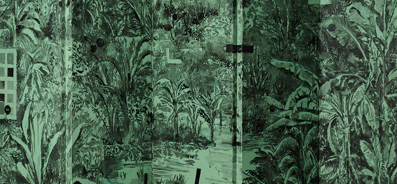 Pillay’s paintings have a washy tranquillity beneath which violence lurks, as she explores the legacies of colonialism and the contradictory nature of historical memory