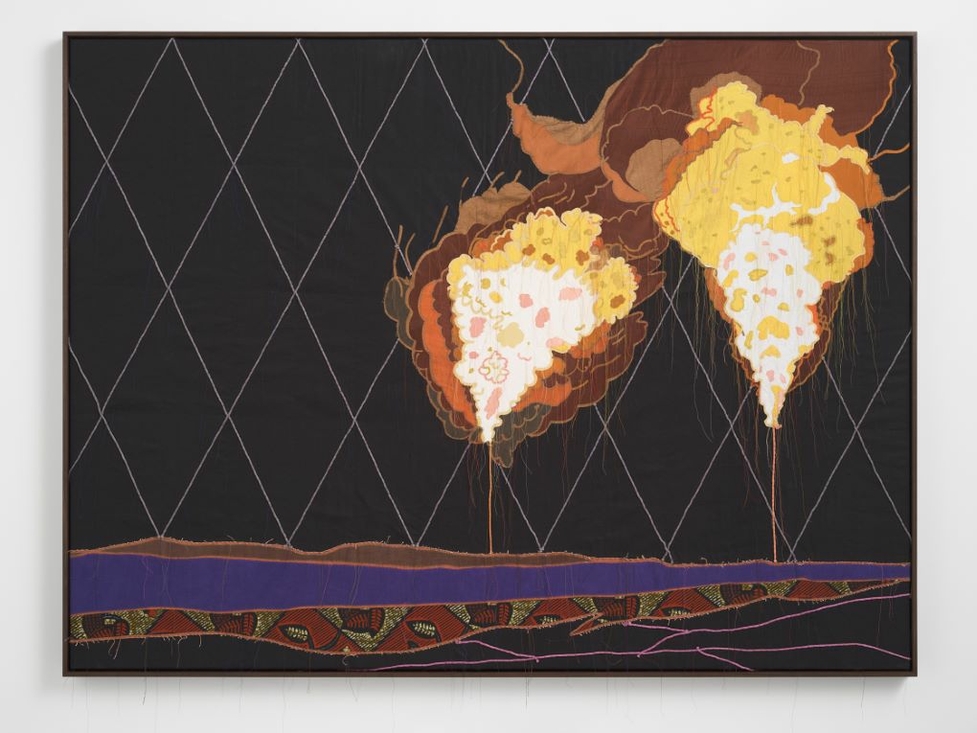 Pamela Phatsimo Sunstrum’s (b. 1980, Mochudi, Botswana) work alludes to mythology, geology and theories on the nature of the universe. Her work includes imagery that reflects the diverse genealogies of her experience living in different parts of Africa, Southeast Asia, and the U.S. as well as ongoing research in ethnography, ecology, and quantum physics. The artist’s boundary-crossing practice centres Black female identity in the discourse of postcolonialism and neocolonialism, highlighting the contributions of overlooked historical figures while emphasising modes of knowledge and communication beyond the status quo.
