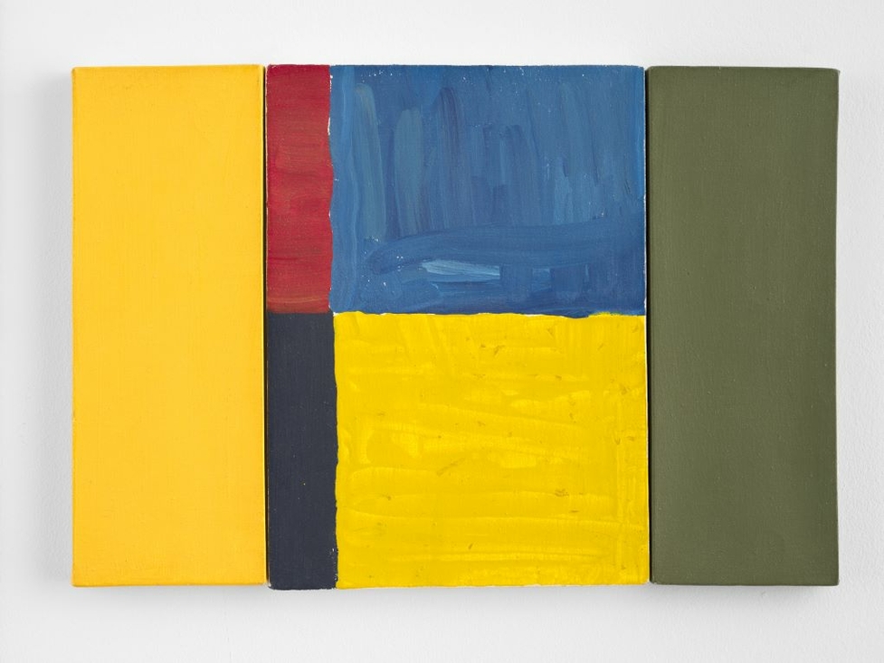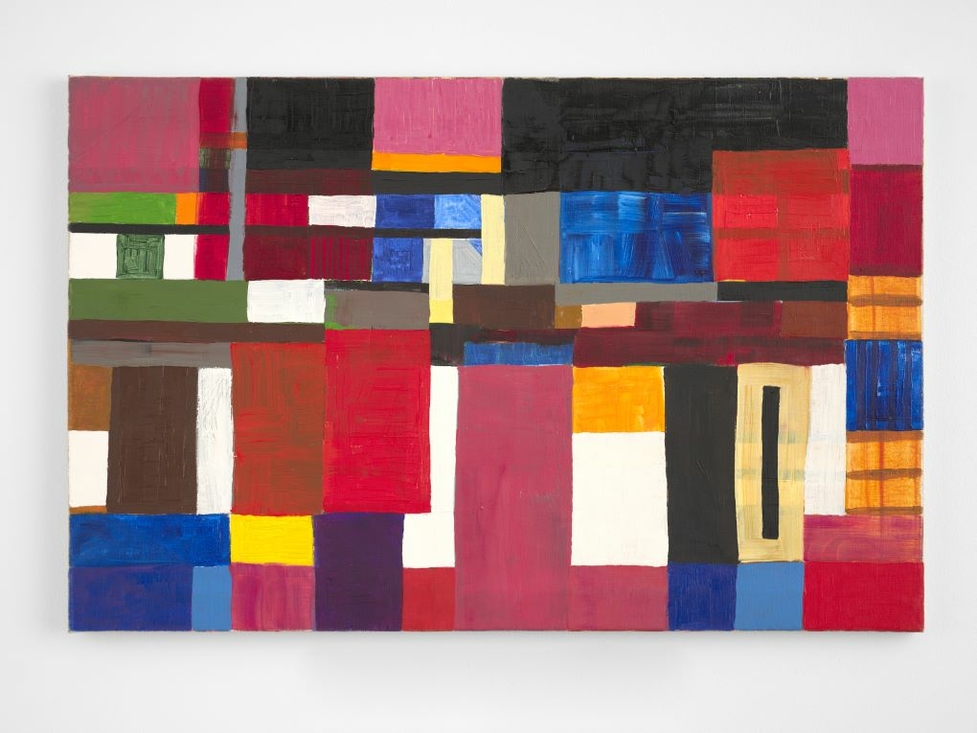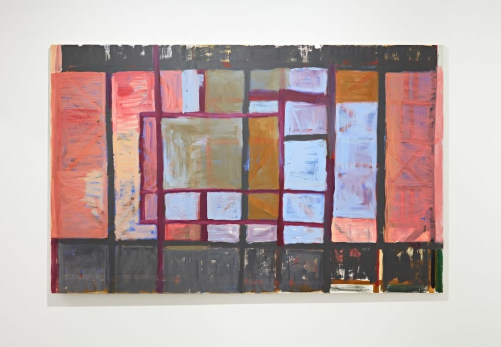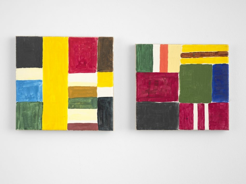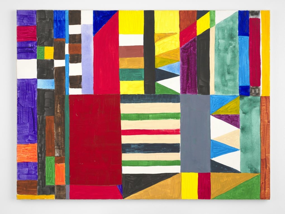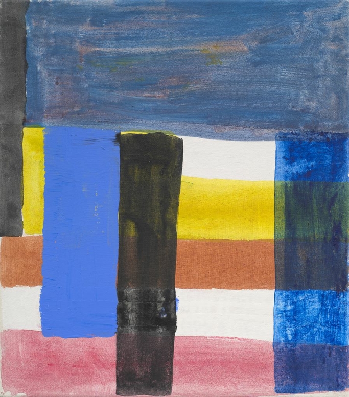 Kwami spent the first fifty years of his life in Africa, a period that shaped his artistic vision in lasting ways. Early influences included the kiosks, hand-painted signage and improvised architecture of West African towns – structures whose forms translated into his paintings in ways that always suggested scale, even in the smallest works. These environments, together with Ewe and Asante textile design, jazz, and the tradition of mural painting, offered him a vocabulary of grids, rhythms and chromatic relationships through which he developed a profoundly original language. Whether in architectural structures or textiles, Kwami found vehicles for exploring the expressive and structural potential of colour: blocks and stripes of uneven sizes converge and diverge in patterns that evoke cadence, syncopation and the paradoxical tensions he sought to hold “in a moment”.