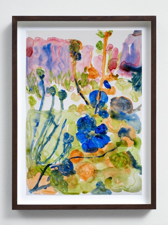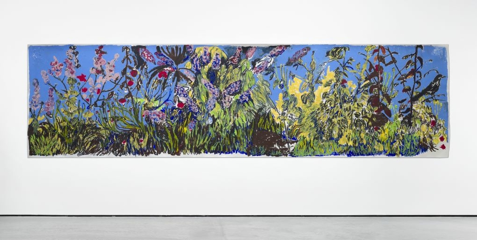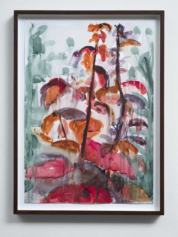 The residency marked a pivotal shift for Khoza, whose work has long centred on intimate portraiture. This shift emerged from a mix of intuition, ethics and circumstance. While in the United Kingdom, Khoza felt it inappropriate to paint people he did not know intimately – a sensitivity that has long shaped his portraiture. In Margate, he found himself turning toward the environments around him: Emin’s garden at TKE Studios, the wild and tended corners outside his studio, and the iconic gardens of Claude Monet in Giverny, which he visited three years prior and now reflected on the British gardening traditions that shape them. Encountering these spaces prompted a new way of thinking about landscape – not as a departure from portraiture, but as another mode through which to consider presence and belonging. These gardens became “portraits” of the people who shape them, while also echoing the artist’s memories of gardens in eSwatini, where Khoza was born, and their own layered histories of influence.