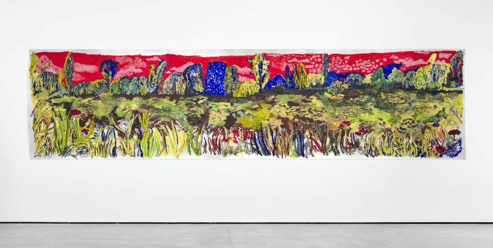 Khoza began working with oil sticks during the residency, embracing their immediacy, density and physical resistance to produce a series of paintings that each stretch over four metres wide. The scale of these works – coupled with the demanding, full-body effort required by oil stick – generated a heightened, almost urgent gestural language. Produced during a period of personal turbulence, these paintings offered a sense of escape and reordering – “I felt like I was painting for my life,” he recalls. Margate’s rhythms – its coastline, solitude and long walks by the ocean – further shaped the emotional atmosphere of the work, grounding it in a language of introspection. For Khoza, the garden, the ocean and the heart became symbolic sites of spiritual anchoring, places where clarity, faith and ancestral presence felt most accessible.