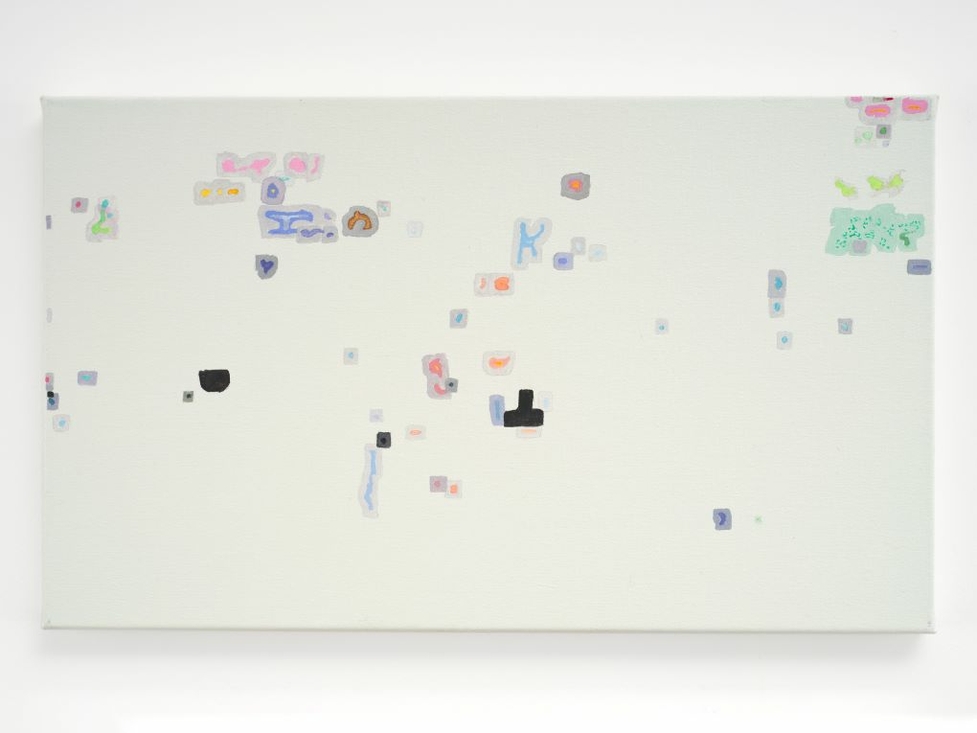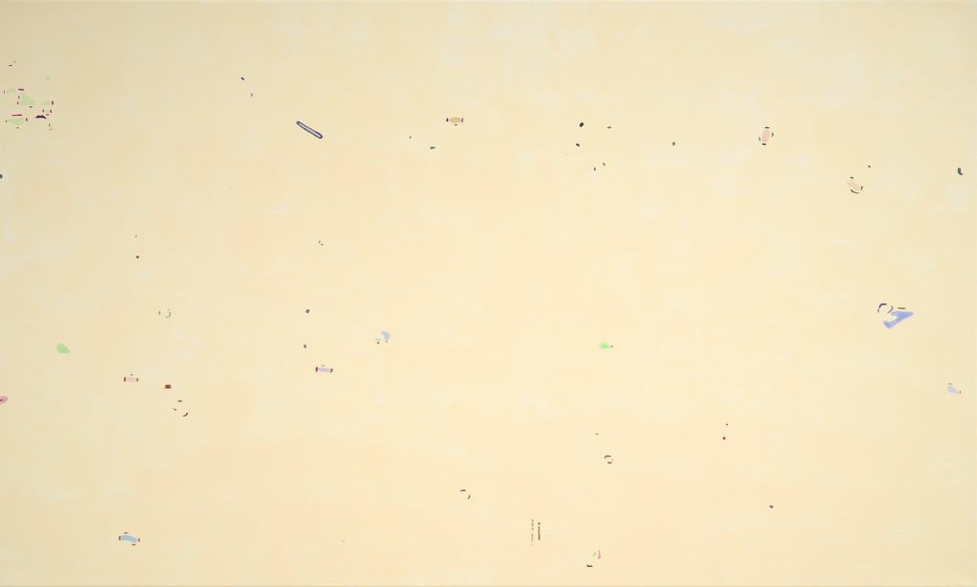 The references are daily digital news images ranging from the insurrection that took hold in Haiti in 2023, resulting in an escalation of violence and displacement of citizens, to the current Washington protests of February 2025. Many works focus on global climate disasters such as Hurricane Beryl in Grenada in 2024 and the heavy rainfalls that caused landslides in the Southern region of Ethiopia that same year. Shakinovsky subjects these images to digital manipulation, using basic computer filters, until unexpected abstract forms emerge to replace but not alter the underlying composition or the existing colour placement of the original. At times, it may be hours or weeks before the “right” image to translate into paint reveals itself through this filtering process. The source material is therefore generated from political/social-media images rather than through self-expression or formal abstraction. She refers to this as a process that reveals “parallel realities” that maintain the essence of the tragic source material, while creating an entirely new visual language that escapes traditional abstract painting categories. Ironically, it is a form of photorealism, although Shakinovsky sees the process as more aligned to the devotional monastic discipline of reproducing manuscripts or Zen practice.